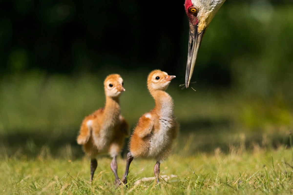 Adult Sandhill Cranes can be up to 5 feet tall, but they all start out as tiny balls of fluff. When I got news that the Sandhill Cranes at a local refuge had hatched two colts, I went out as soon as I could to see and photograph them. I focused on capturing intimate moments as the parents fed their young.