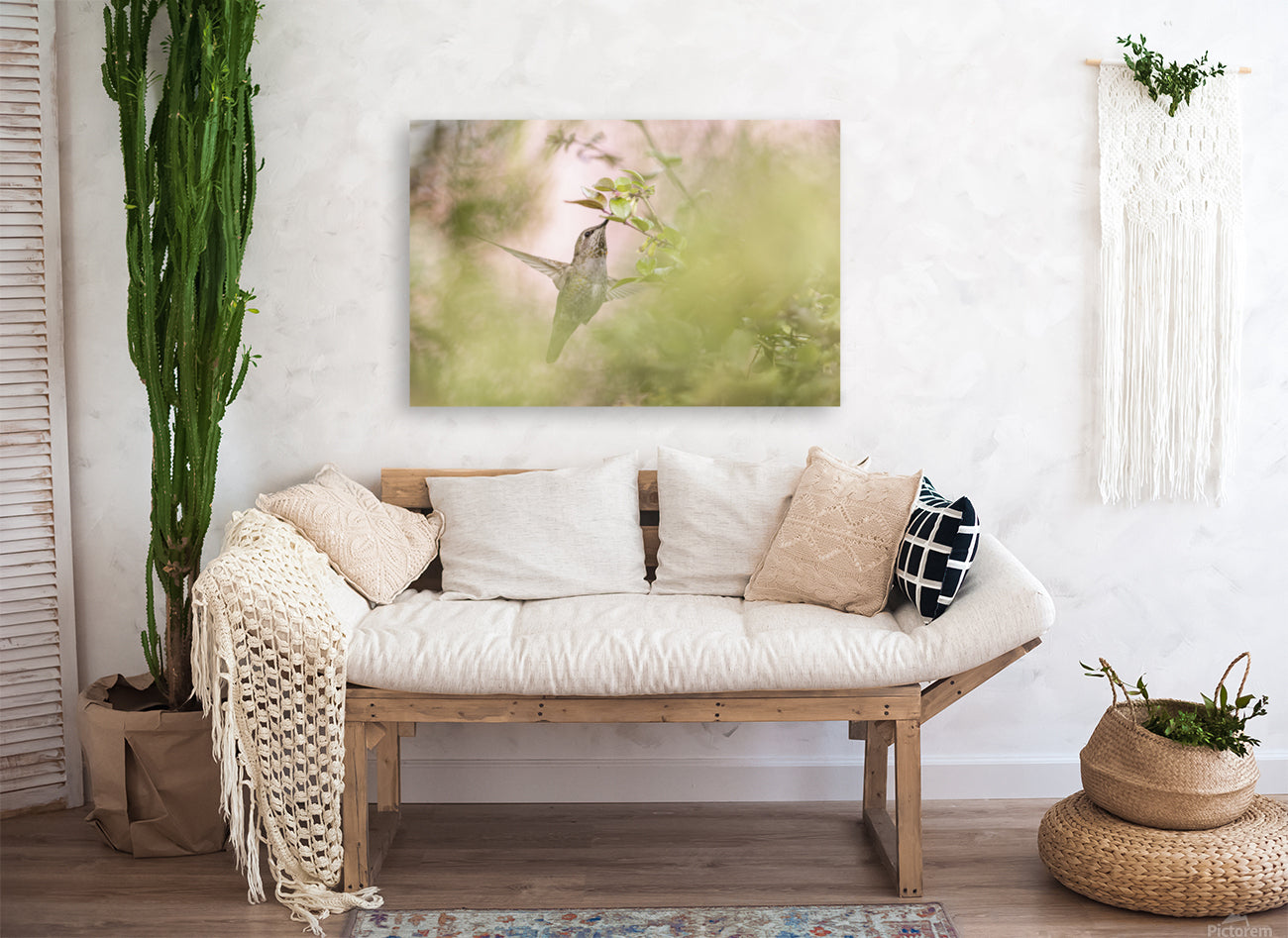In the spring of 2021, I decided I would get to know my local area in Vancouver, Canada as well as possible. Each morning, I ventured out to a local park, searching for birds and wildlife. Over the course of the spring, I became more and more focused on the beautiful hummingbirds that were abundant in the area. I would spend hours searching for their favourite feeding locations, and then spend hours waiting by their favourite flowering plants as they visited to feed on nectar. For this image, I crouched down for a low angle, shooting through foliage and towards the bright tones in the background to get a dreamy in-camera effect as this Anna's Hummingbird hovered, feeding on small honeysuckle flowers.