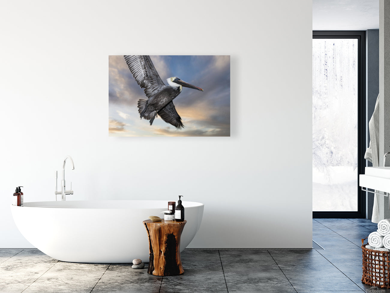 I photographed this Brown Pelican in flight with a wide angle lens, in front of a beautiful evening sky near on the Gulf Coast of Florida. This pelican was among many that would gather at the docks each evening, “escorting” the pleasure fishing boats as they brought in their daily catch.